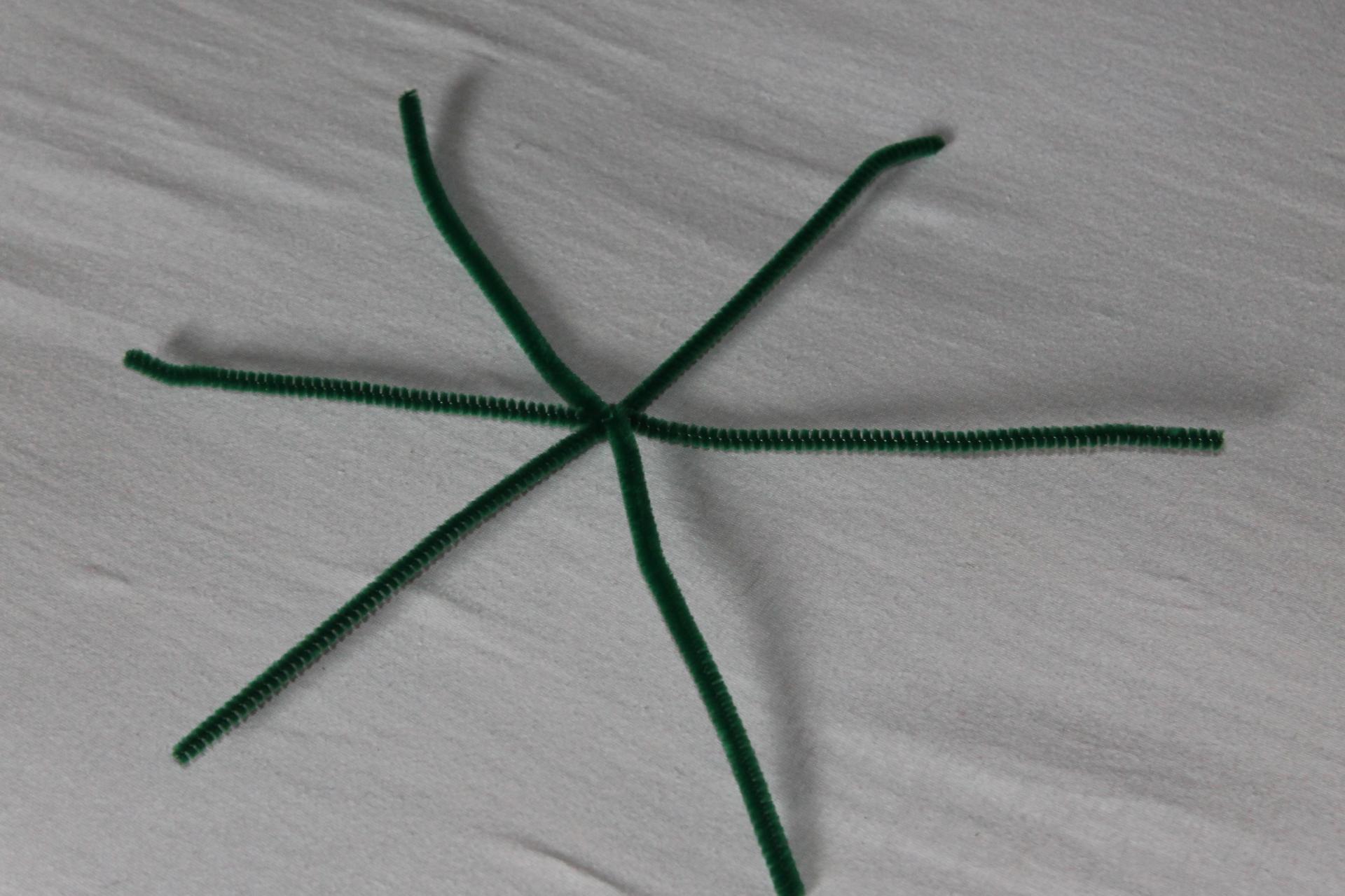 Placer deux chenilles en croix et enrouler une troisième chenille autour des deux autres afin d'obtenir une étoile à 6 branches.